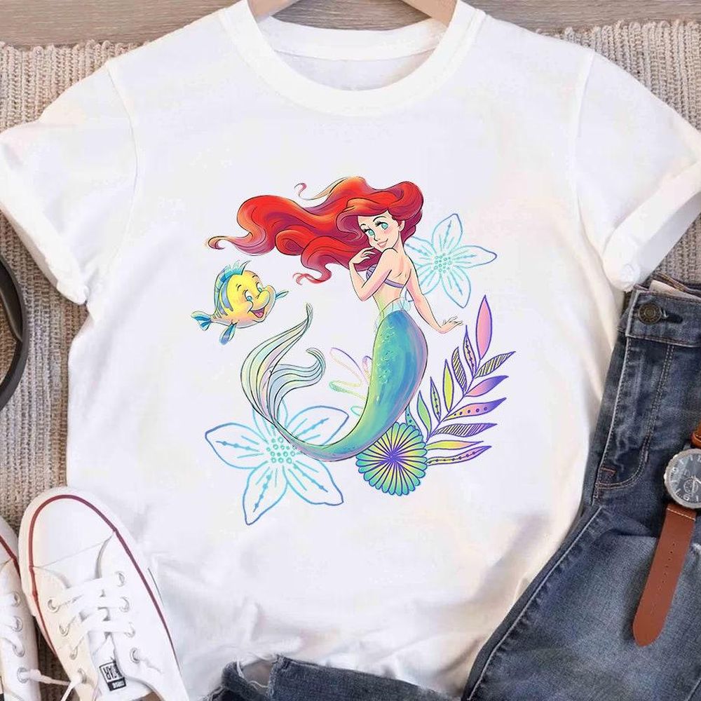 Disney The Little Mermaid Ariel And Flounder Cute Vuitino Shirt