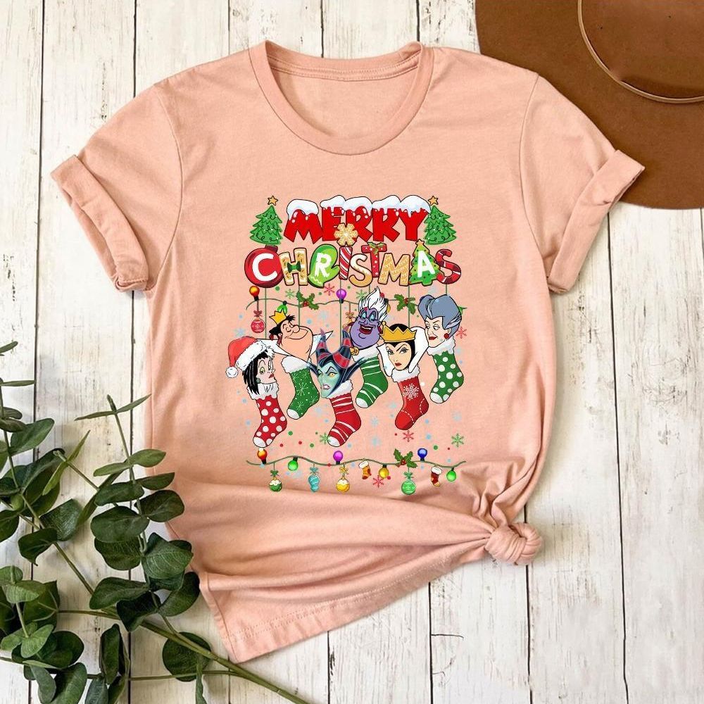 Disney Villain Cruella Ursula Merry Christmas Stocking Vuitino Shirt