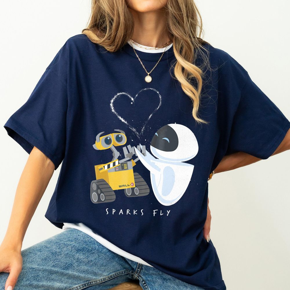 Disney Wall E And Eve Sparks Fly Loving Funny Vuitino Shirt