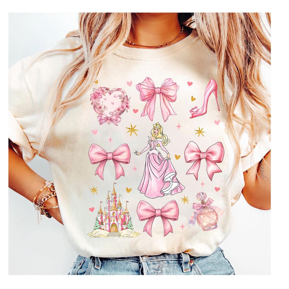 Disney Watercolor Coquette Bows Princess Aurora Vuitino Shirt