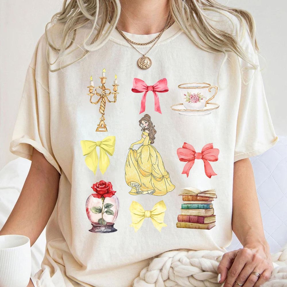 Disney Watercolor Coquette Bows Princess Belle Vuitino Shirt