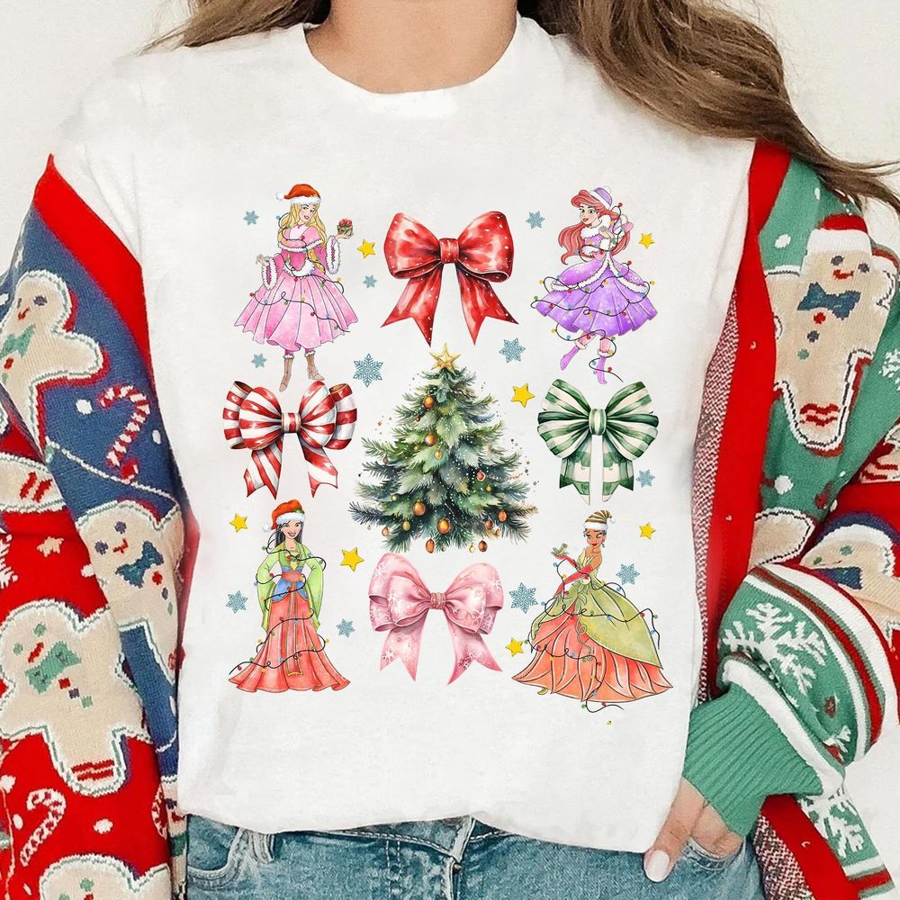 Disney Watercolor Coquette Bows Princess Christmas Vuitino Shirt