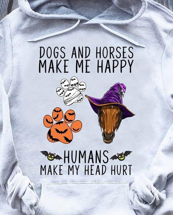 Dogs And Horses Make Me Happy Humans Make My Head Hurt Horse Witch Animal Footprints Halloween Shirt