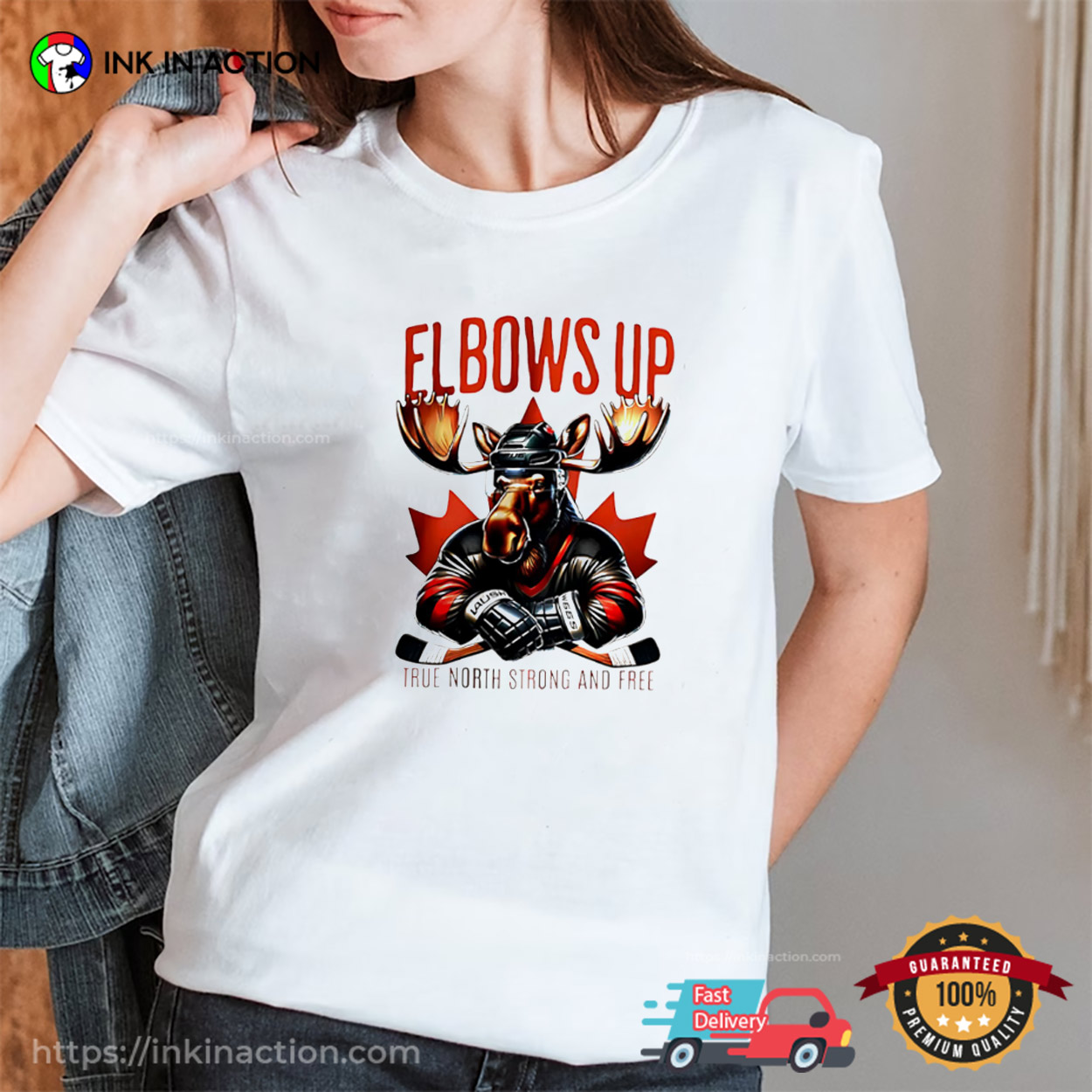 Elbows Up Canada True North Strong And Free Moose Hockey Mascot T-shirt