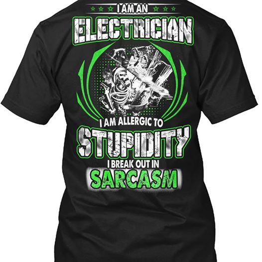Electrician I Am Allergic To Stupidity Sarcasm Shirt