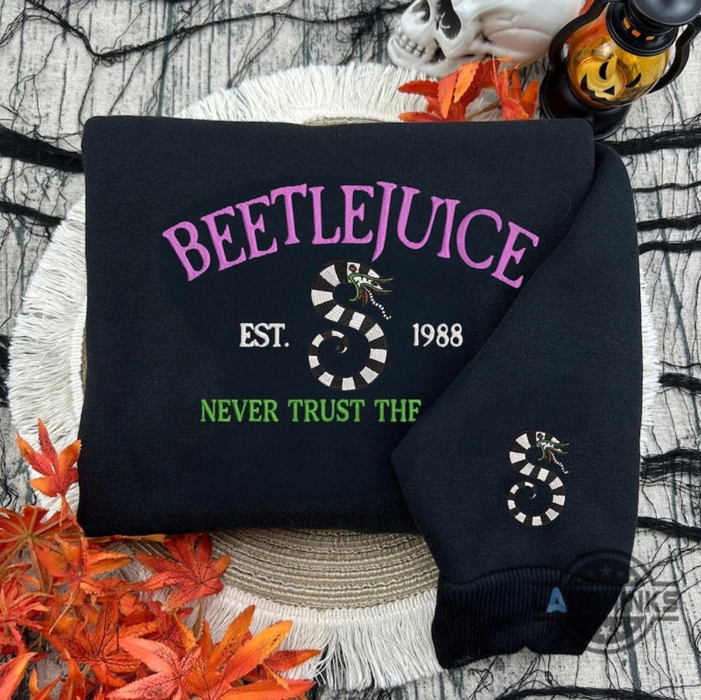 Embroidered Never Trust The Living Beetlejuice Sweatshirt T Shirt Hoodie Halloween Embroidery Custom Gift Laughinks 1
