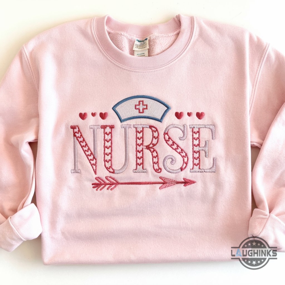 Embroidered Nurse Valentines Day Sweatshirt T Shirt Hoodie