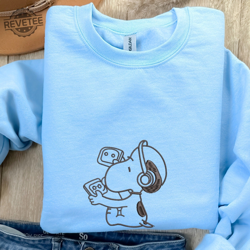Embroidered Snoopy Music Headphone Crewneck Sweatshirt Embroidered Snoopy Sweater Cool Snoopy Sweater Christmas Gift For Family Unique