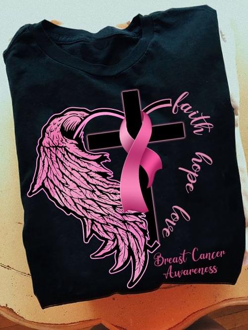 Faith Hope Love Breast Cancer Awareness Heart The Holy Cross Angel Wing Shirt