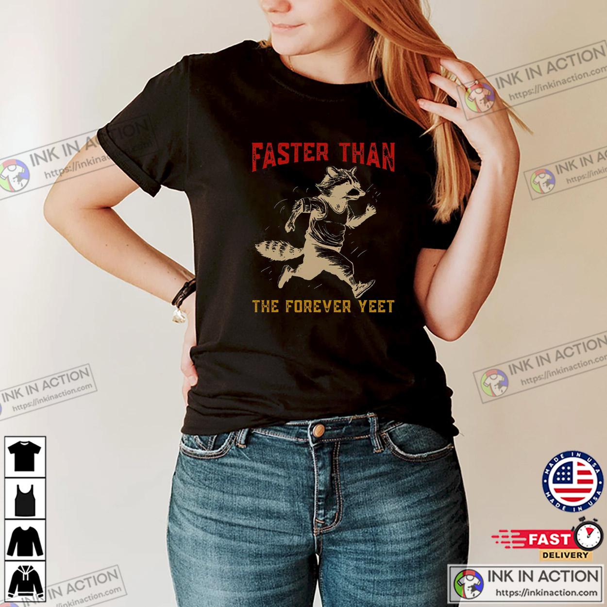 Faster Than The Forever Yeet Running Raccoon T-shirt
