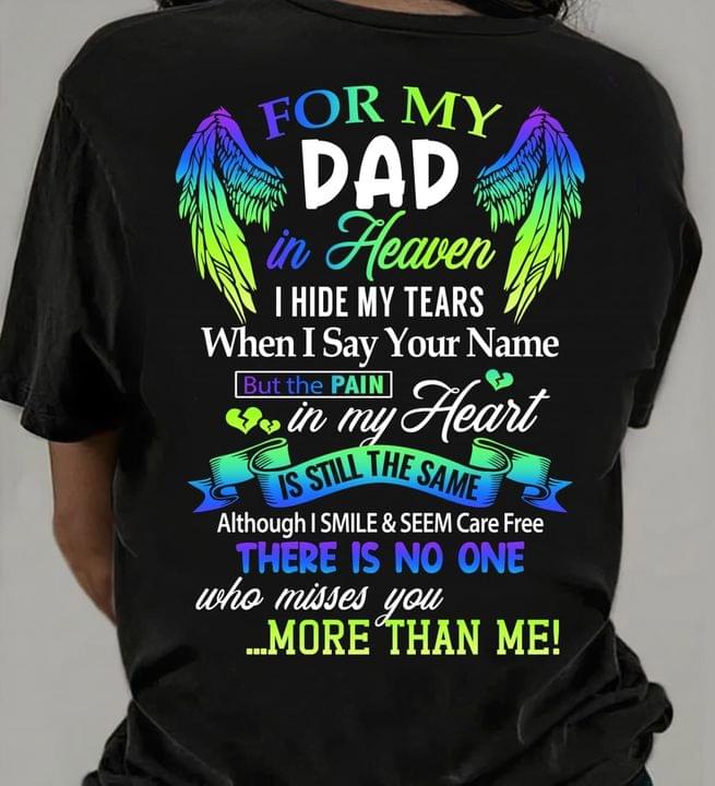 For My Dad In Heaven I Hide My Tears When I Say Your Name But The Pain In My Heart Is Still The Same Father Angel Wings Shirt