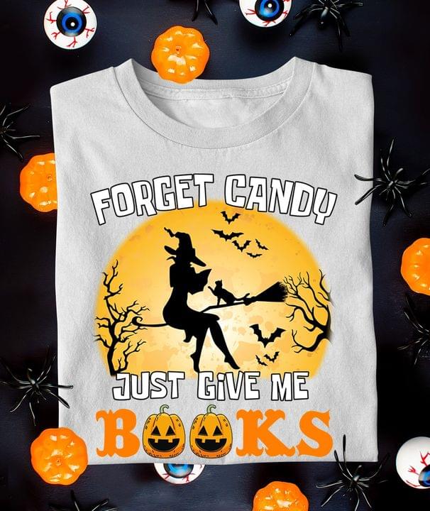 Forget Candy Just Give Me Books Flying Witch Pumpkins Halloween Shirt