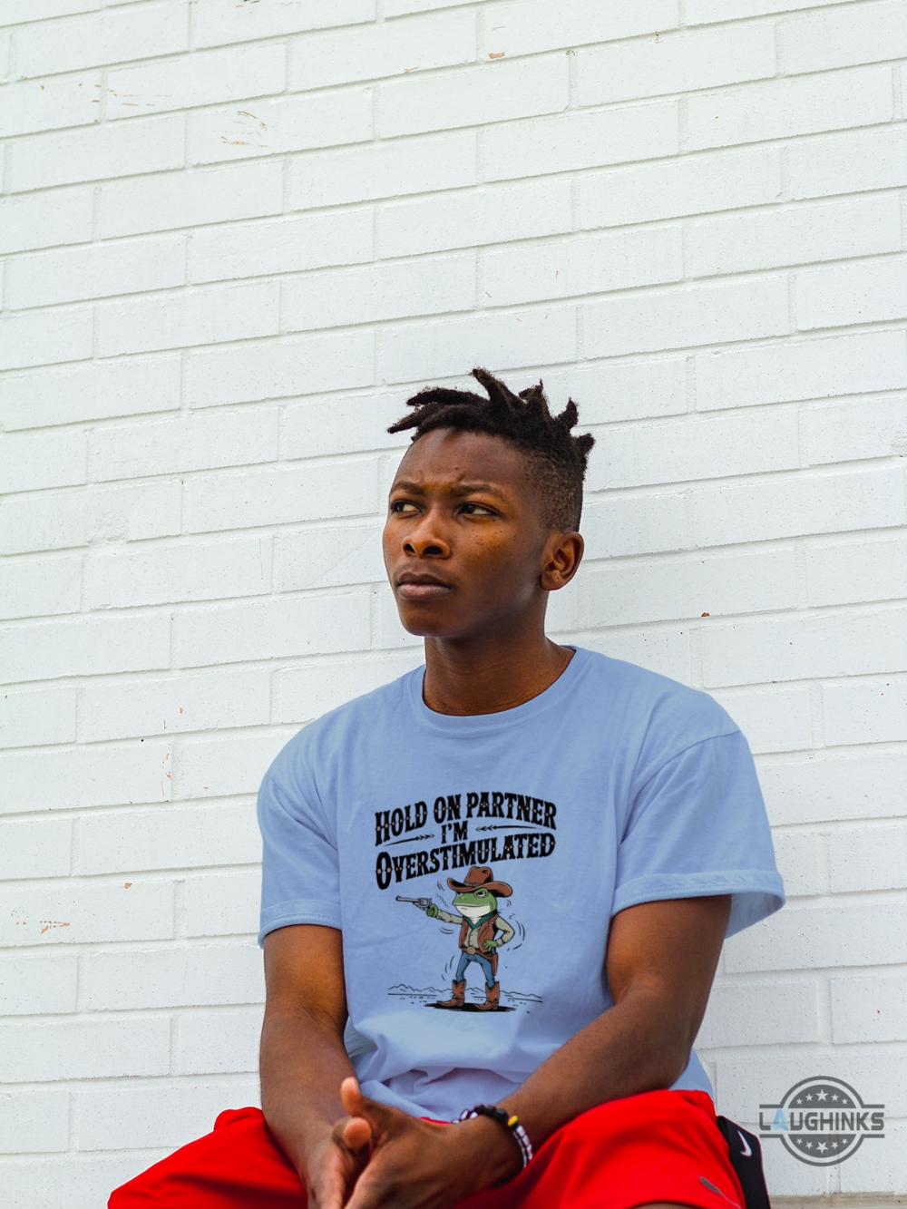 Funny Cowboy Frog Meme Hold On Partner Im Overstimulated Shirt