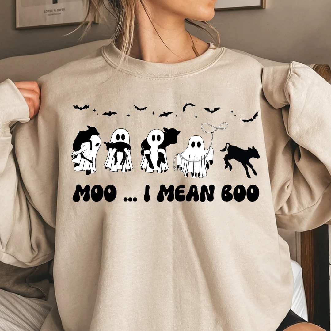 Funny Cute Ghost And Spooky Cow Shirt, Moo I Mean Boo