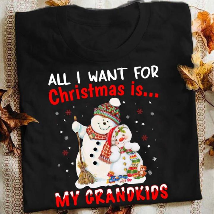 All I Want For Christmas Is My Grandkids Snowman Shirt