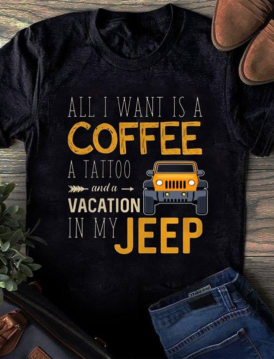 All I Want Is A Coffee A Tattoo And A Vacation In My Jeep Shirt