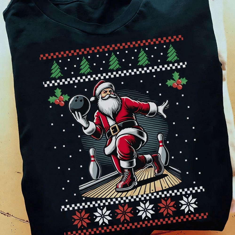 Funny Santa Bowling Christmas T-shirt