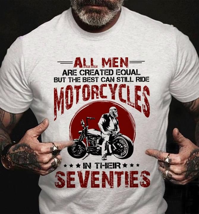 All Men Are Created Equal But The Best Can Still Ride Motorcycles In Their Seventies Biker Shirt