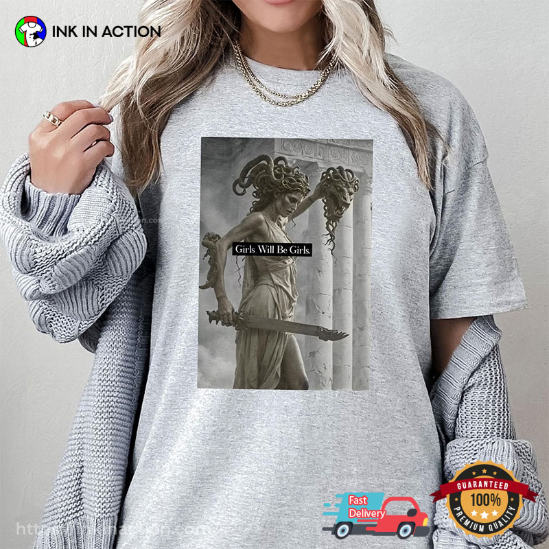 Girls Will Be Girls Feminist Medusa Greek Comfort Colors T-shirt