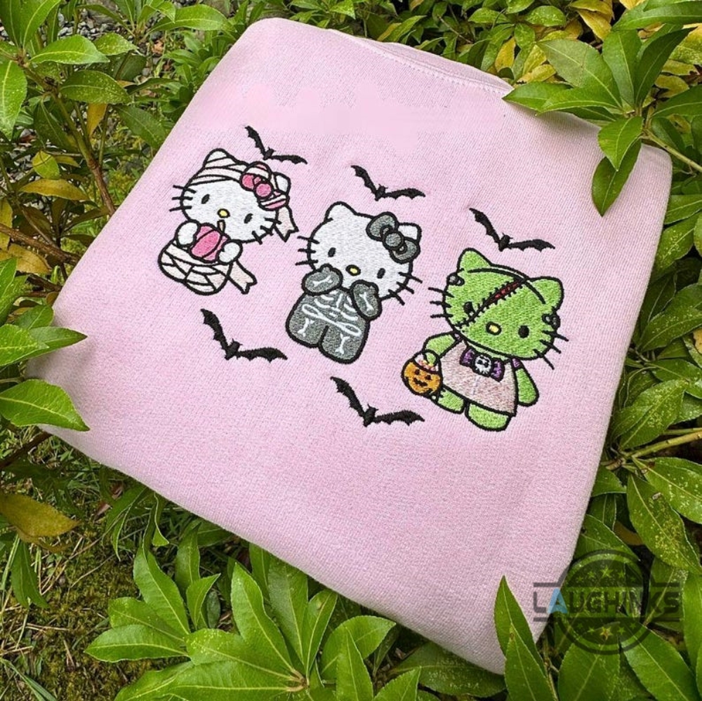 Halloween Hello Kitty Embroidered Sweatshirt T Shirt Hoodie Zombie Cute Kawaii Cat Anime Spooky Season Embroidery Tee Laughinks 1