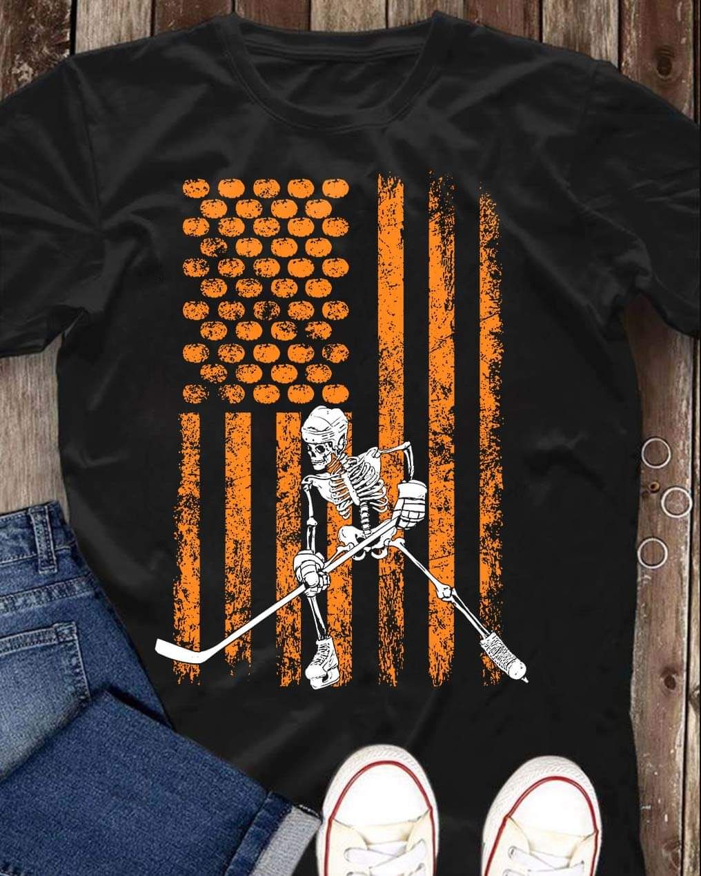Halloween Hockey Skeleton American Winter Sport Shirt