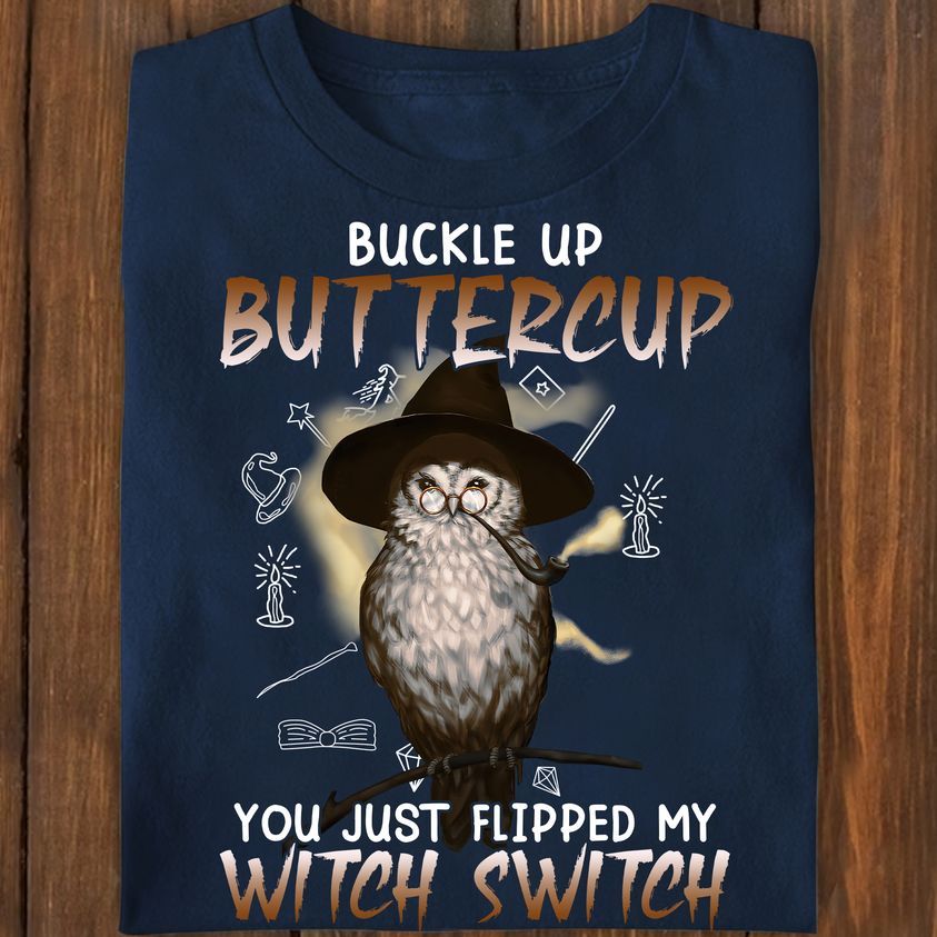 Halloween Owl Shirt, Buckle Up Buttercup, You Just Flipped My Witch Switch