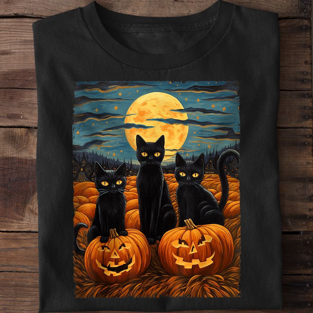 Halloween Shirt, Black Cat Team And Pumpkin Field