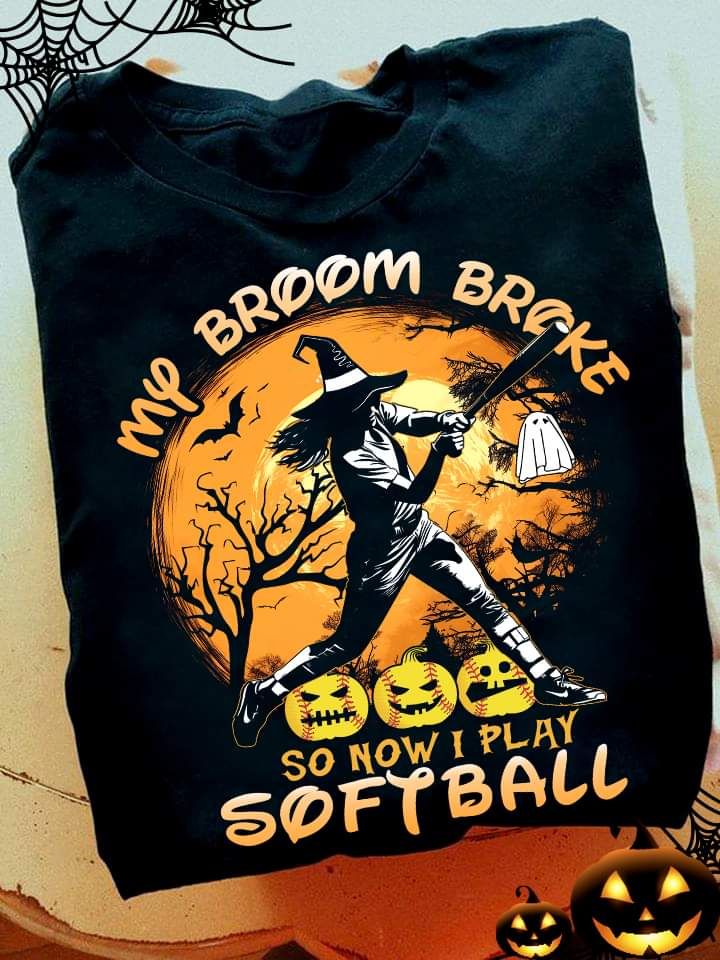 Halloween Shirt, My Broom Broke So Now I Play Softball