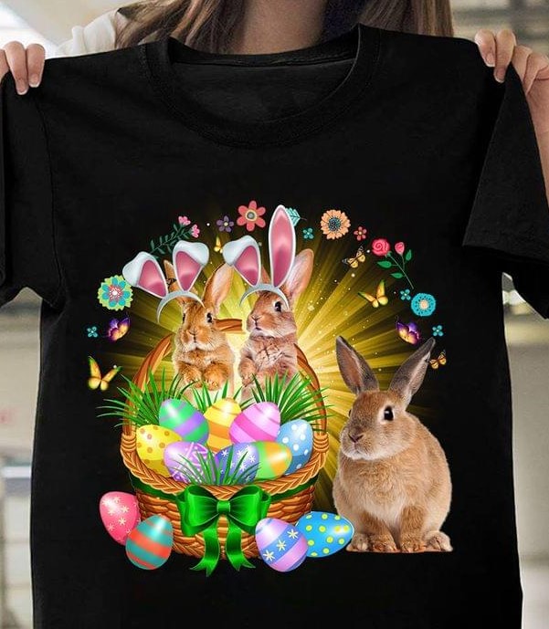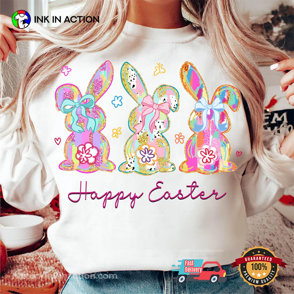 Happy Easter Eggs Rabbits Flowers Shirt