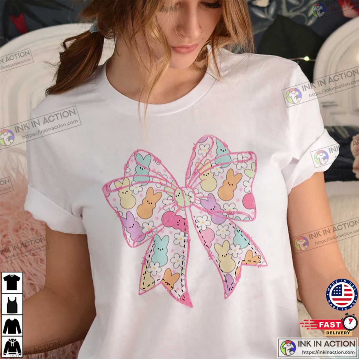 Happy Easter Cute Coquette Peeps Vintage Shirt
