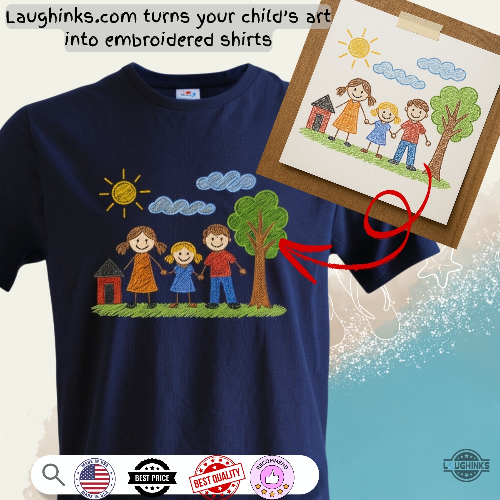 Happy Family Childs Drawing Style Embroidered Shirt Mothers Day Gift Ideas