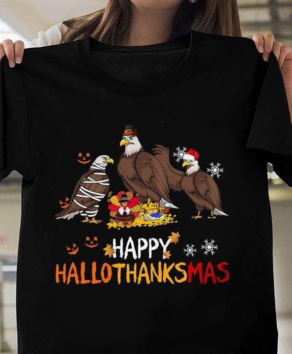 Happy Hallothanksmas Eagles Holidays Halloween Thanksgiving Christmas Shirt