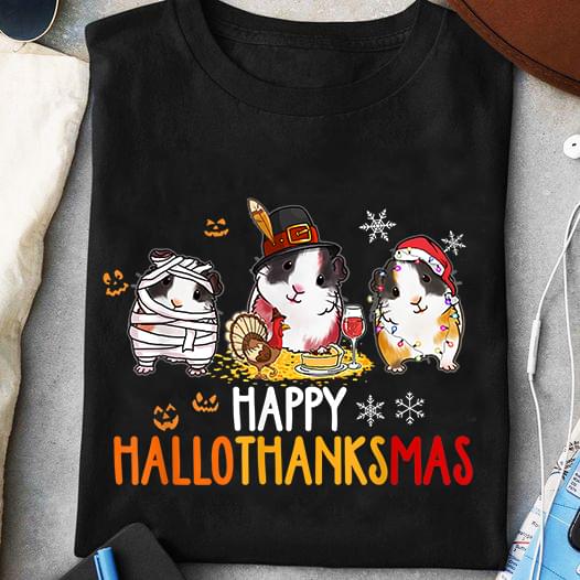 Happy Hallothanksmas Hamsters Holidays Halloween Thanksgiving Christmas Shirt