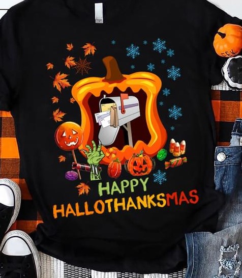 Happy Hallothanksmas Holidays Halloween Thanksgiving Christmas Shirt