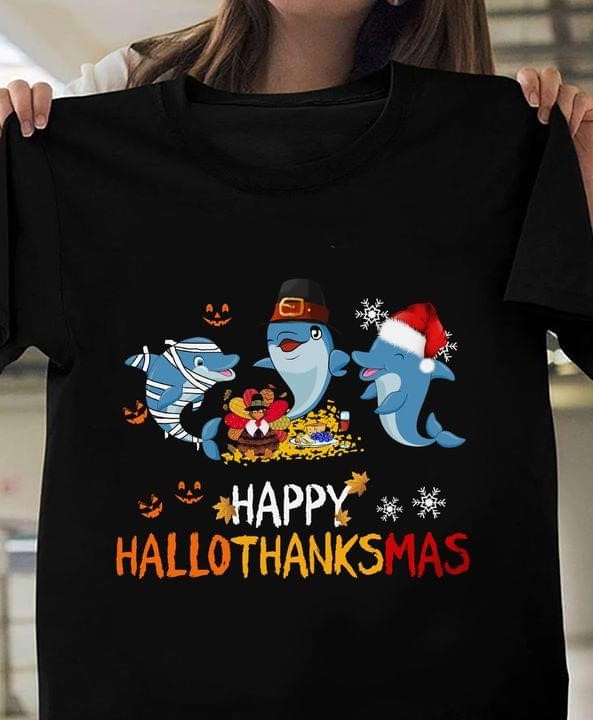 Happy Hallothanksmas Sharks Holidays Halloween Thanksgiving Christmas Shirt
