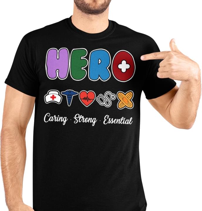 Hero Caring Strong Essential Nurse Emt Heart Bandage Logo Shirt