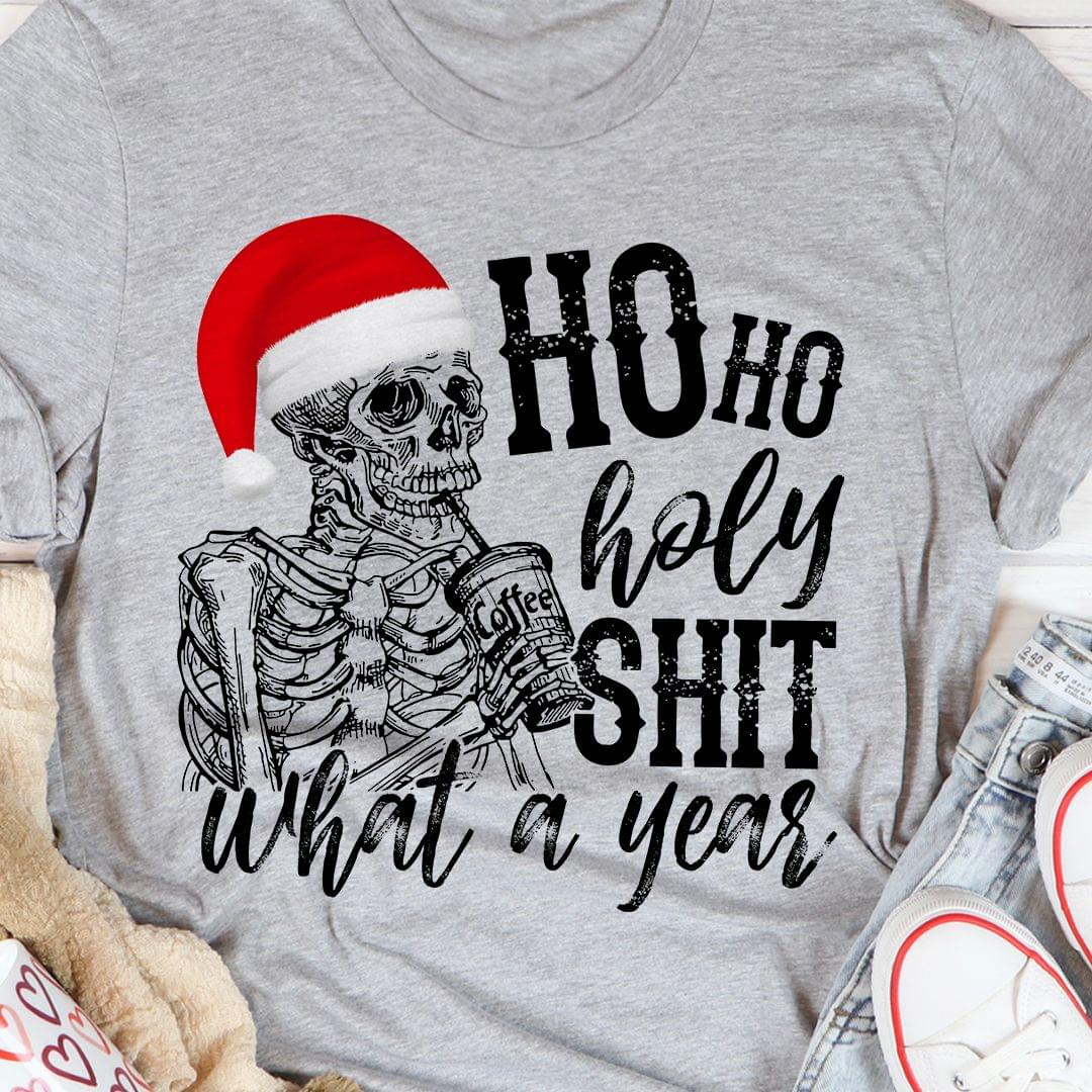 Ho Ho Holy Shit What A Year Skeleton Santa Claus Christmas Shirt