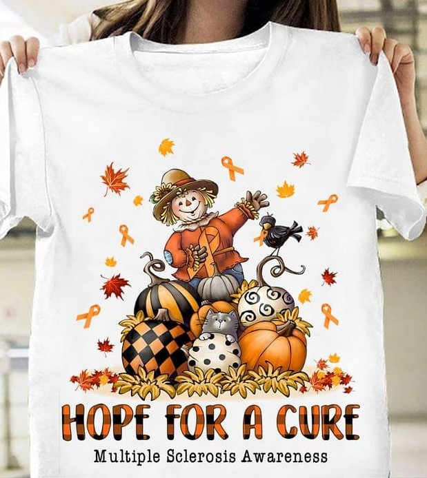 Hope For A Cure Multiple Sclerosis Awareness Straw Man Pumpkins Maple Leaves Shirt