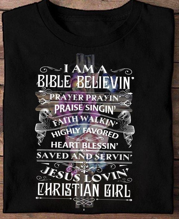 I Am A Bible Believin Prayer Prayin Praise Singin Faith Walkin Highly Favored Christian Girl The Holy Cross Shirt