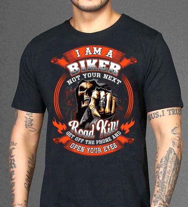 I Am A Biker I Say God Bless America I Respect My Biker Brothers I Salute Our Flag & Thank Our Troops If This Offends You I Don't Care Skull Biker Shirt