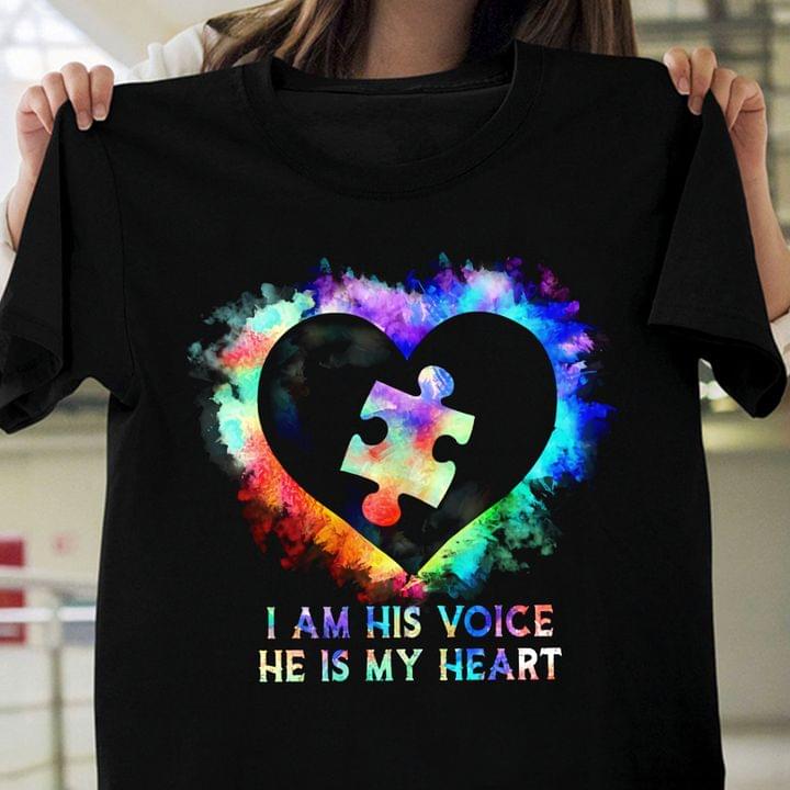 I Am His Voice He Is My Heart Puzzle Autism Shirt