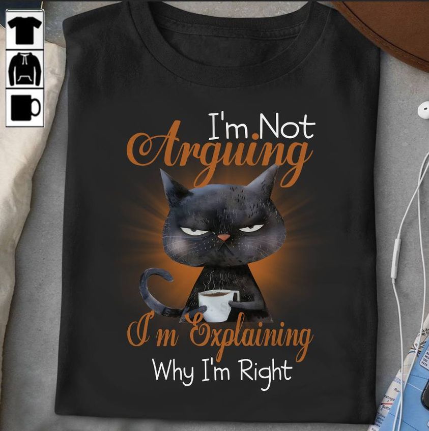 I Am Not Arguing I Am Explaining Why I Am Right, Black Cat Shirt