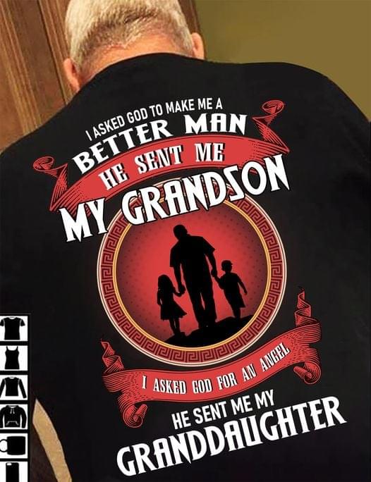 I Asked God Better Man My Grandson And Granddaughter Family Angel Shirt