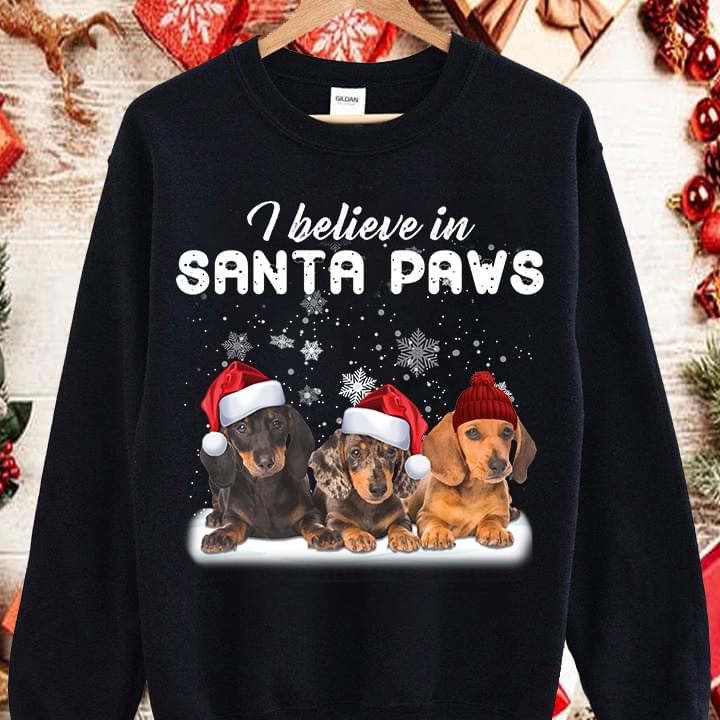 I Believe In Santa Paws Dachshund Dogs Christmas Shirt