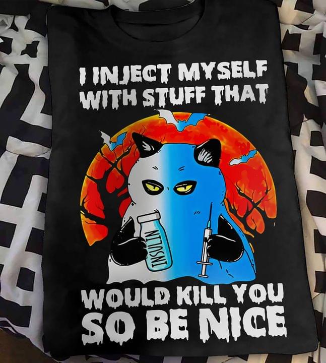 I Inject Myself With Stuff That Would Kill You So Be Nice Cat Insulin Moon Halloween Shirt