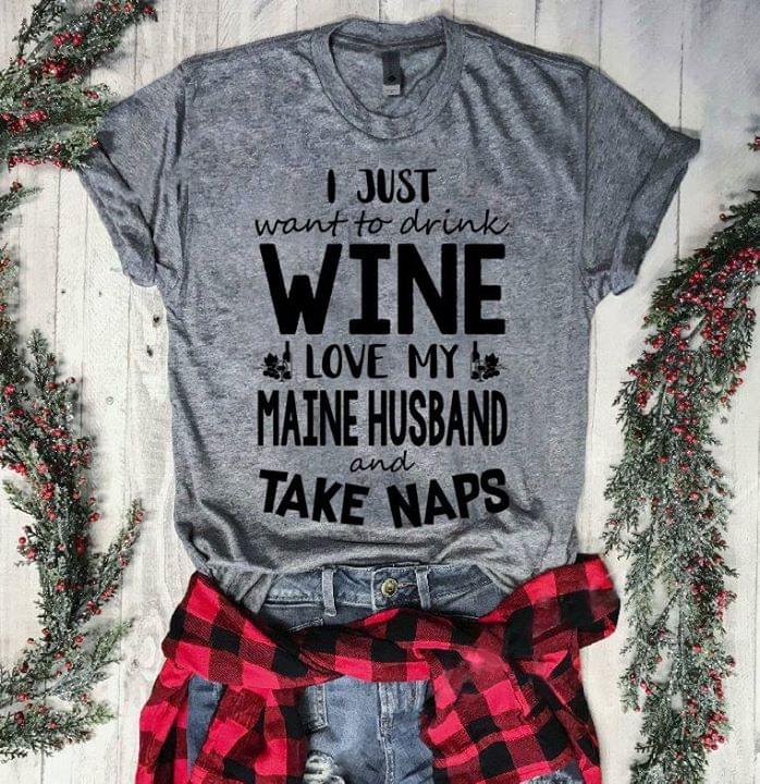 I Just Want To Drink Wine Love My Maine Husband And Take Naps Shirt