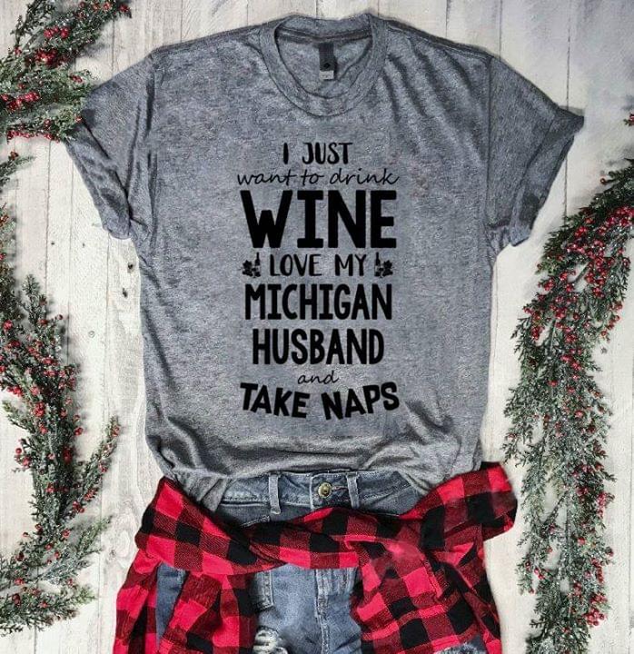 I Just Want To Drink Wine Love My Michigan Husband And Take Naps Shirt