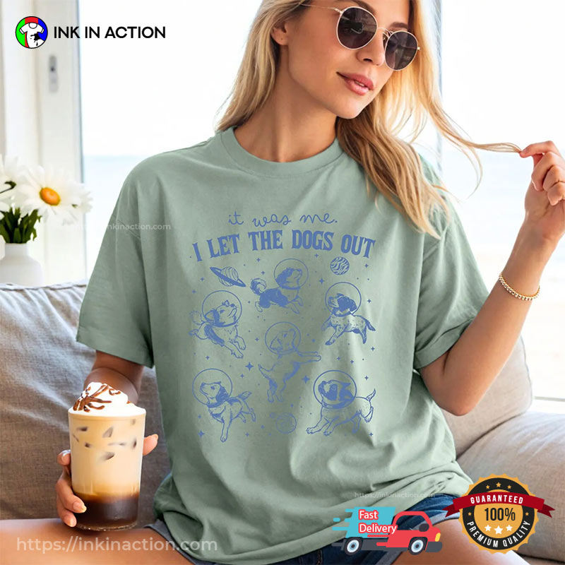 I Let The Dog Out, Dogs In Space Comfort Colors T-shirt