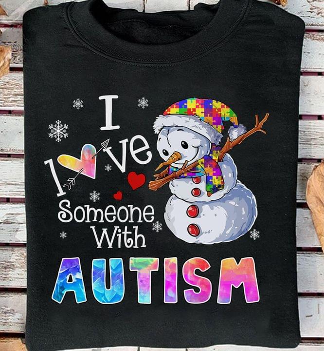 I Love Someone With Autism Christmas Snowman Colorful Puzzles Shirt
