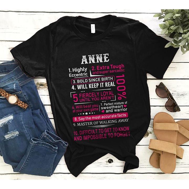 Anne 1 Highly Eccentric 2 Extra Tough And Super Sarcastic 3 Bold Since Birth Shirt